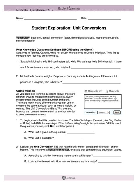 Download Student Exploration Unit Conversions Gizmo Answers Library Binding
