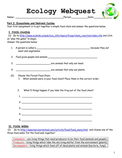 FSH - Reading Online ECOLOGY WEBQUEST ANSWER KEY iBooks Open Library